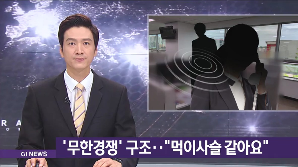 "상담원들은, 같은 팀 상담원끼리는 물론, 다른 팀, 다른 센터, 심지어 다른 지역과도 콜 수 경쟁을 해야 한다고 말 합니다. 말그대로 '무한경쟁'에 시달리고 있다는 겁니다."
