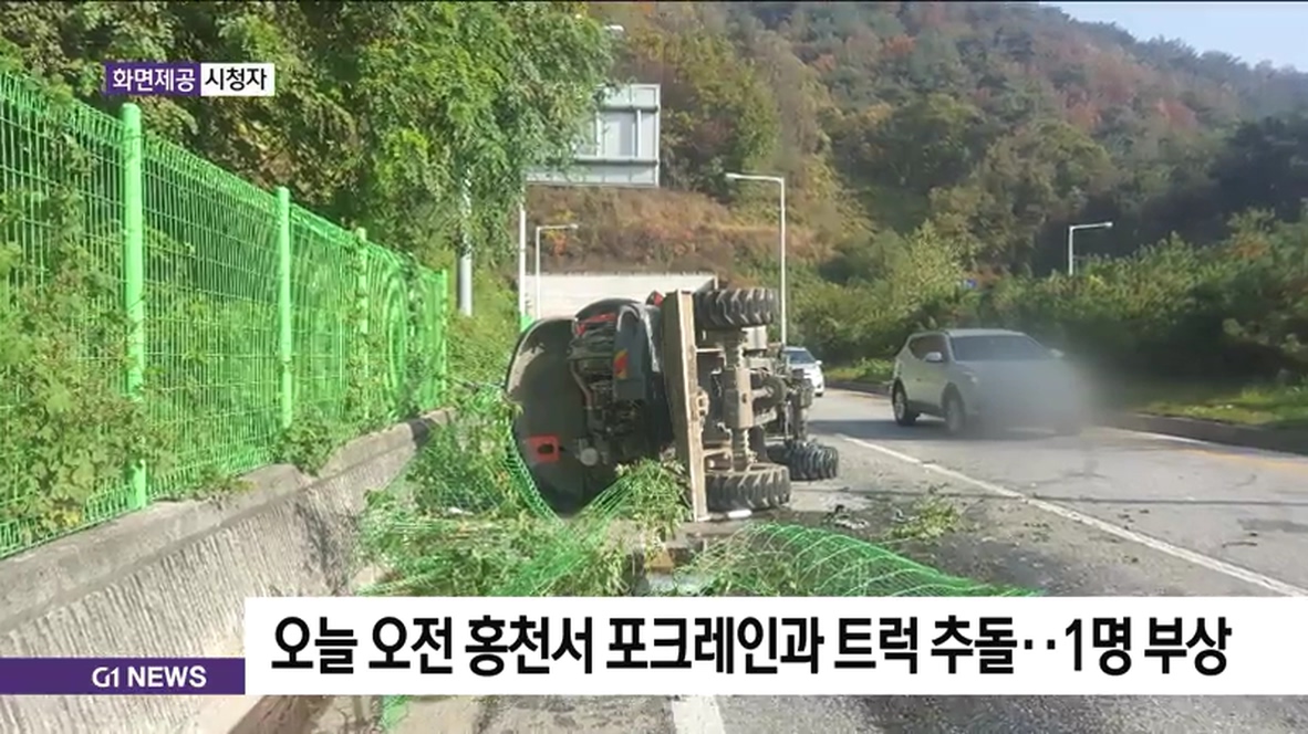 오늘 오전 홍천서 포크레인과 트럭 추돌..1명 다쳐