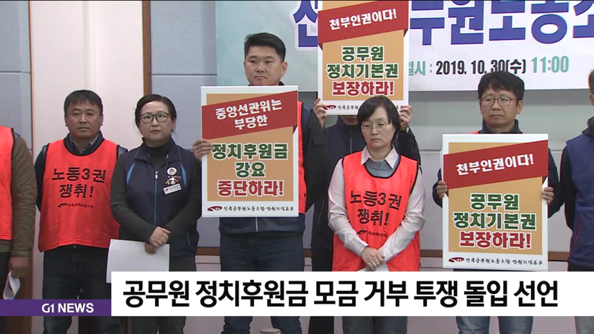 전국공무원노동조합 강원지역본부가 공무원들의 정치 후원금 모금 거부 투쟁을 선언하고 나섰습니다.
