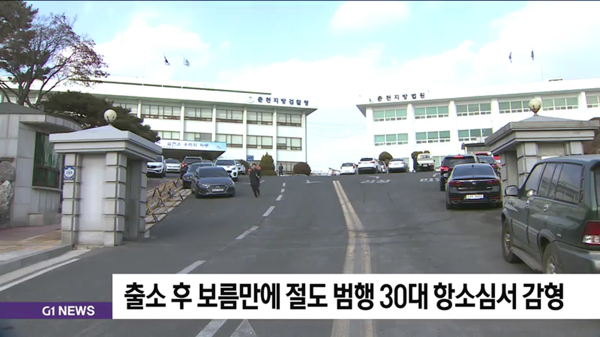 출소한 지 보름여 만에 속초시 내 모텔 5곳을 돌면서 객실 투숙객의 금품을 훔친 30대가 항소심에서 감형됐습니다.