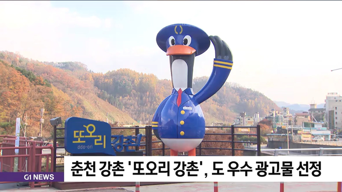 춘천시는 제 18회 강원도 아름다운 간판 공모전 기관광고물 부문에서 '또오리 강촌'이 최우수상을 수상했다고 밝혀습니다.