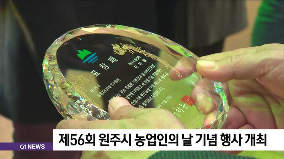 제56회 원주시 농업인의 날 기념 행사가 오늘(11일) 치악체육관에서 지역 농업인들이 참석한 가운데 열렸습니다.