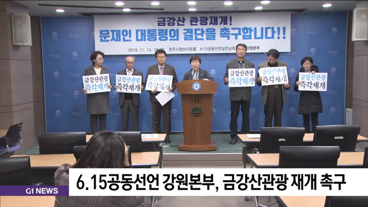 6.15 공동선언실천 남측위원회 강원본부는 오늘(13일) 원주시청 브리핑룸에서 기자회견을 열고, 문재인 대통령에게 금강산 관광 재개 선언을 촉구했습니다.