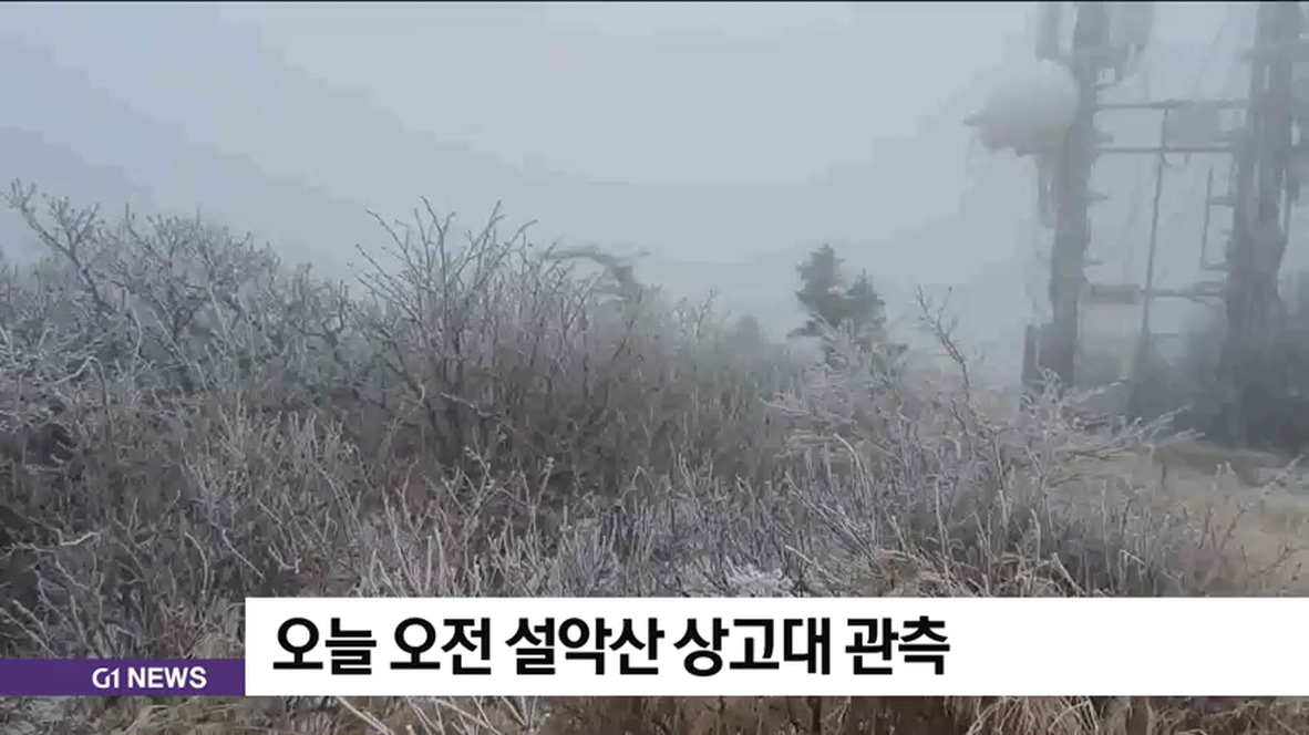 설악산국립공원사무소는 나뭇가지나 풀에 눈처럼 얼어붙은 서리인 상고대가 설악산 중청대피소 일대에서 관측됐다고 밝혔습니다.
