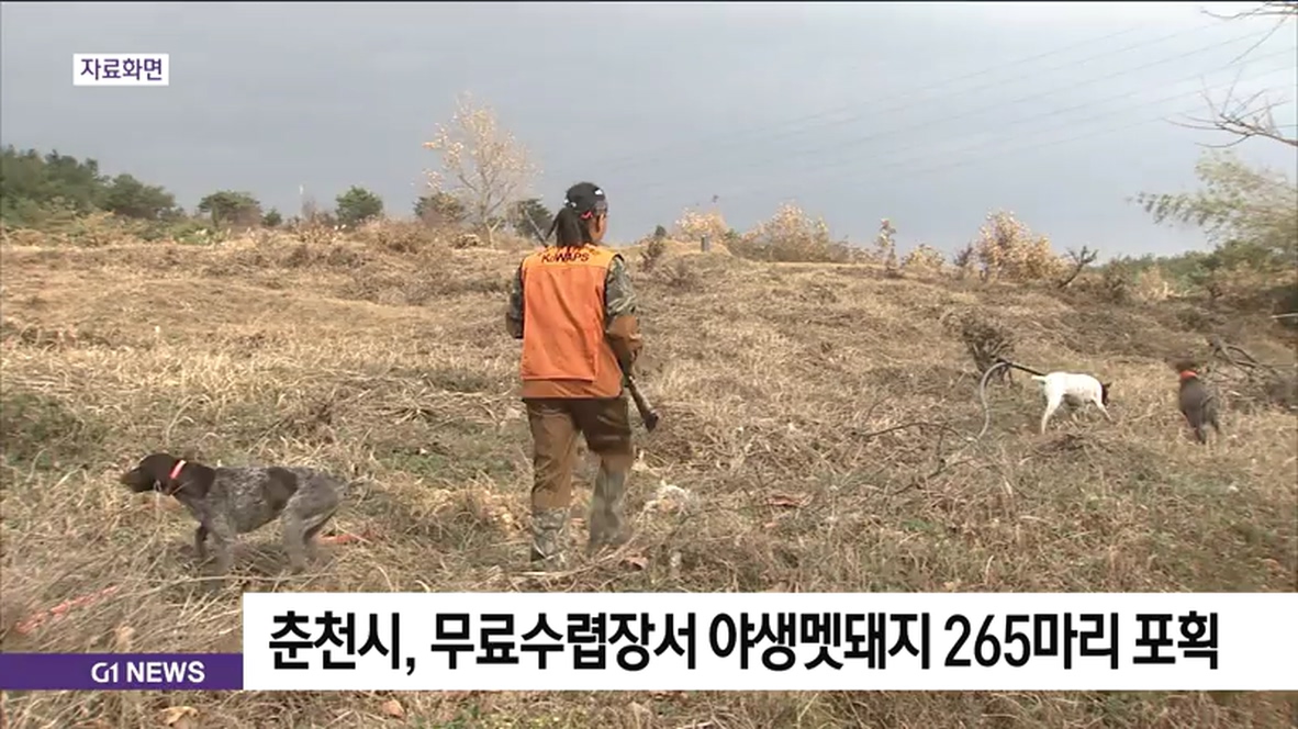 춘천시가 아프리카돼지열병 확산을 막기 위해 운영에 들어간 무료수렵장에서 야생멧돼지 265마리를 포획했습니다.