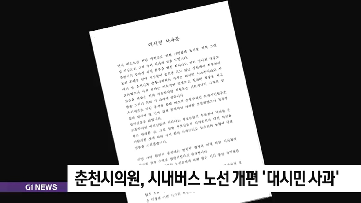 춘천시의회 소속 시의원들이 춘천 시내버스 노선 전면 개편 논란에 대해 대시민 사과문을 발표했습니다.