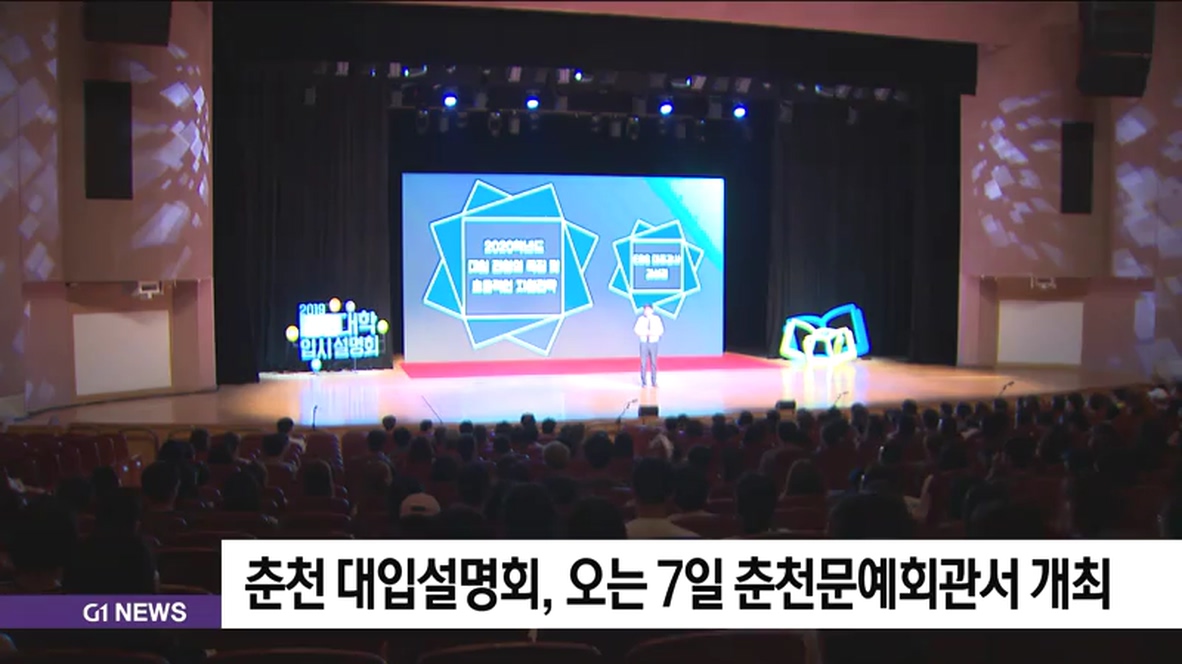 춘천시와 G1 강원민방이 주최하는 '2019 춘천 대학입시설명회'가 오는 7일 토요일 오후 2시 춘천문화예술회관에서 열립니다.