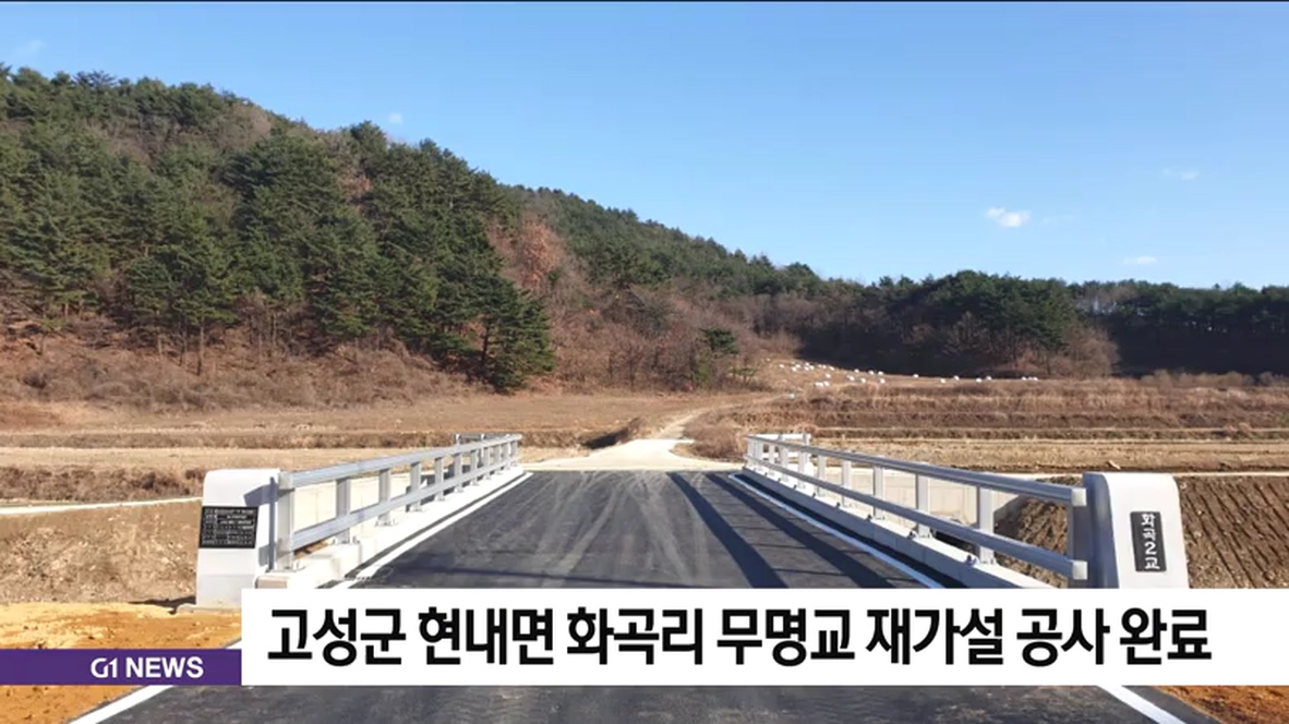 고성군은 현내면 화곡리 배봉천에 있는 무명교 재가설 공사가 끝나 오는 13일 개통한다고 밝혔습니다.