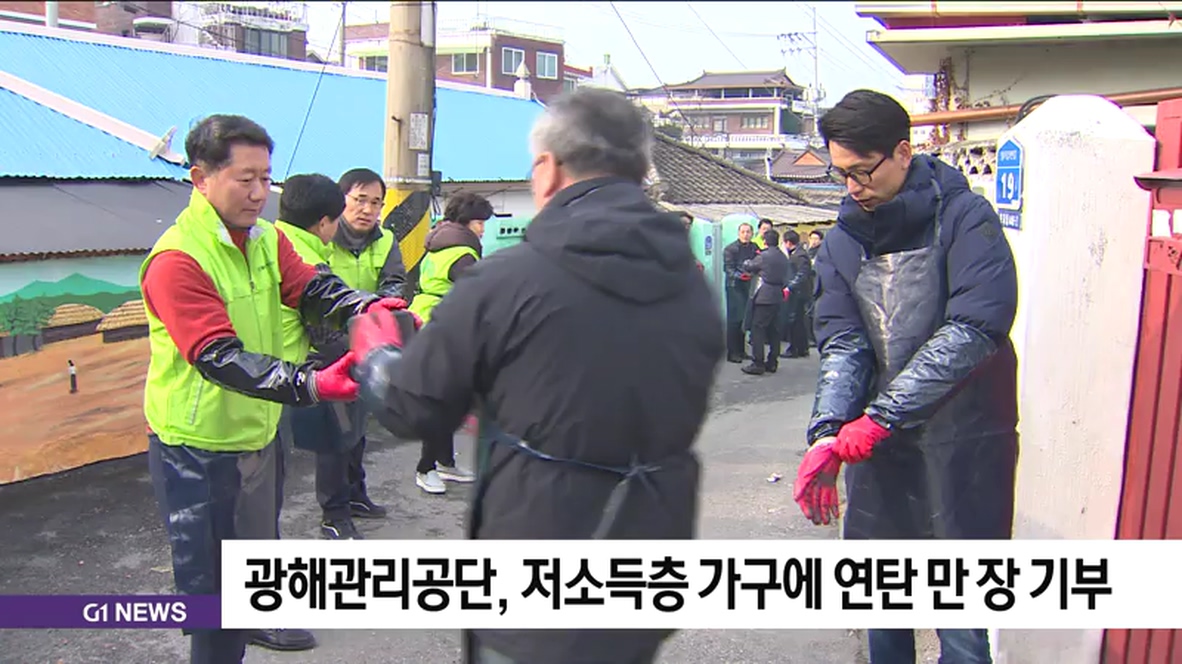 광해관리공단 이청룡 이사장과 최경순 감사 등 임직원과 G1강원민방 허인구 사장, 따뜻한 한반도 사랑의 연탄나눔운동 관계자 등은 오늘, 춘천시 효자동 일대 소외계층 3가구에 연탄 6백 장과 쌀, 라면 등을 직접 배달했습니다.