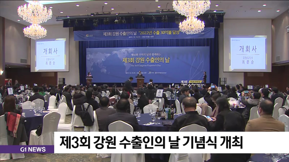 강원도와 한국무역협회 강원지역본부는 오늘 원주 인터불고호텔에서 도내 기업인과 수출유공자 등 250여명이 참석한 가운데, 제3회 강원 수출인의 날 기념식을 개최했습니다.