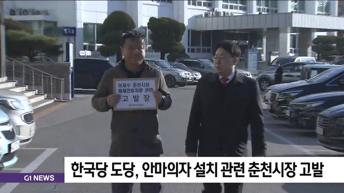 자유한국당 강원도당은 오늘(12일) 이재수 시장에 대해 고액 안마의자를 불법 설치한 자동차관리법 위반과 직권남용 혐의를 들어 춘천지검에 고발장을 제출했습니다.