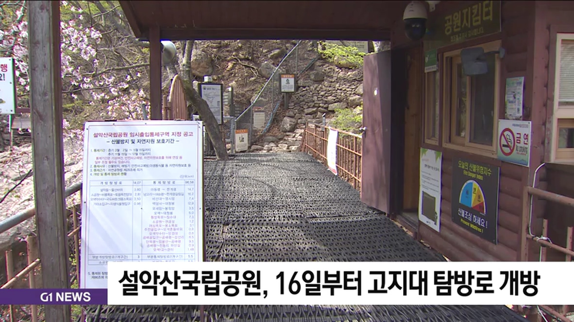 설악산국립공원사무소는 산불예방과 야생 동·식물 보호를 위해 통제해 왔던 대청봉 등 고지대 탐방로를 오는 16일부터 개방한다고 밝혔습니다.[인터뷰]