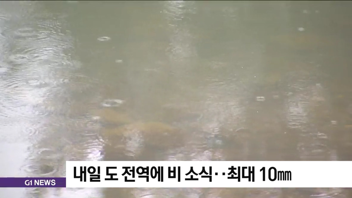 내일 강원도 전역에는, 하루종일 5에서 10mm 가량의 비가 내리겠습니다.