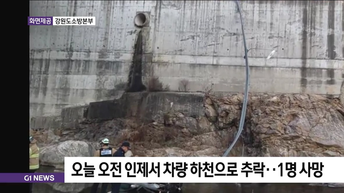 오늘 오전 인제서 차량 하천으로 추락..1명 사망