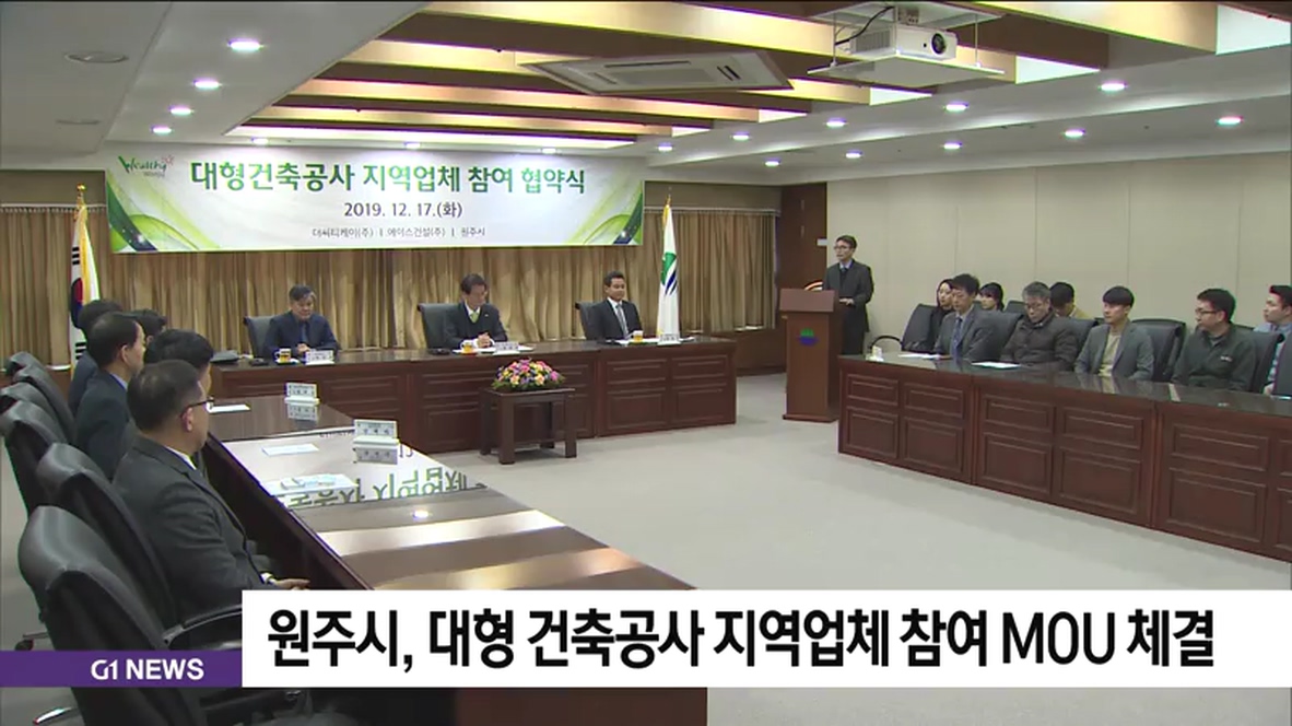원주시는 혁신도시에 대형 공사를 진행하는 건설업체와 지역 업체 참여 비율을 보장하는 업무 협약을 맺었습니다.