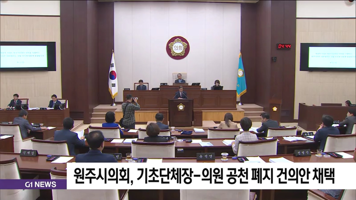 원주시의회, 기초단체장-의원 공천 폐지 건의안 채택