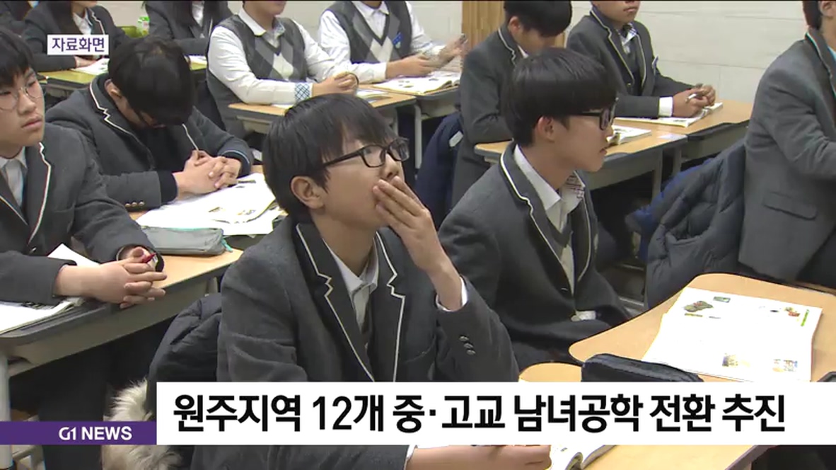 원주교육지원청은 원주지역 중학교 6곳과 고등학교 6곳에 대해 남녀공학 전환을 추진하고, 학생과 학부모, 교직원을 대상으로 설문조사를 진행할 계획이라고 밝혔습니다.