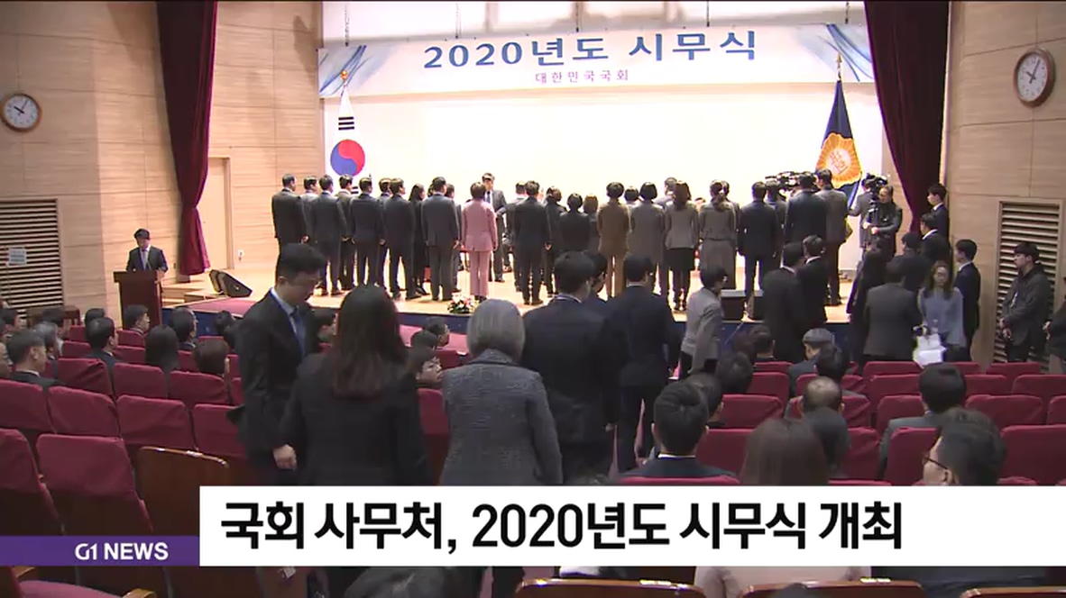국회사무처는 오늘, 의원회관 대회의실에서 유인태 사무총장과 한공식 입법차장 등 임직원이 참석한 가운데, 2020년도 시무식을 개최했습니다.