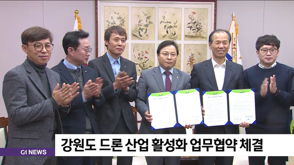 강원도와 (사)강원첨단무인항공산업협회는 오늘(7일) 강원도청에서 드론산업 활성화를 위한 업무협약을 체결했습니다.