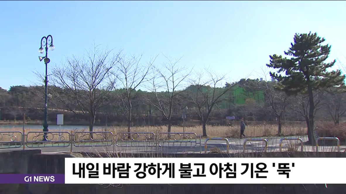 내일 강원도는 대체로 흐린 가운데, 바람이 강하게 불고 아침 기온이 10도 이상 크게 떨어져 춥겠습니다.
