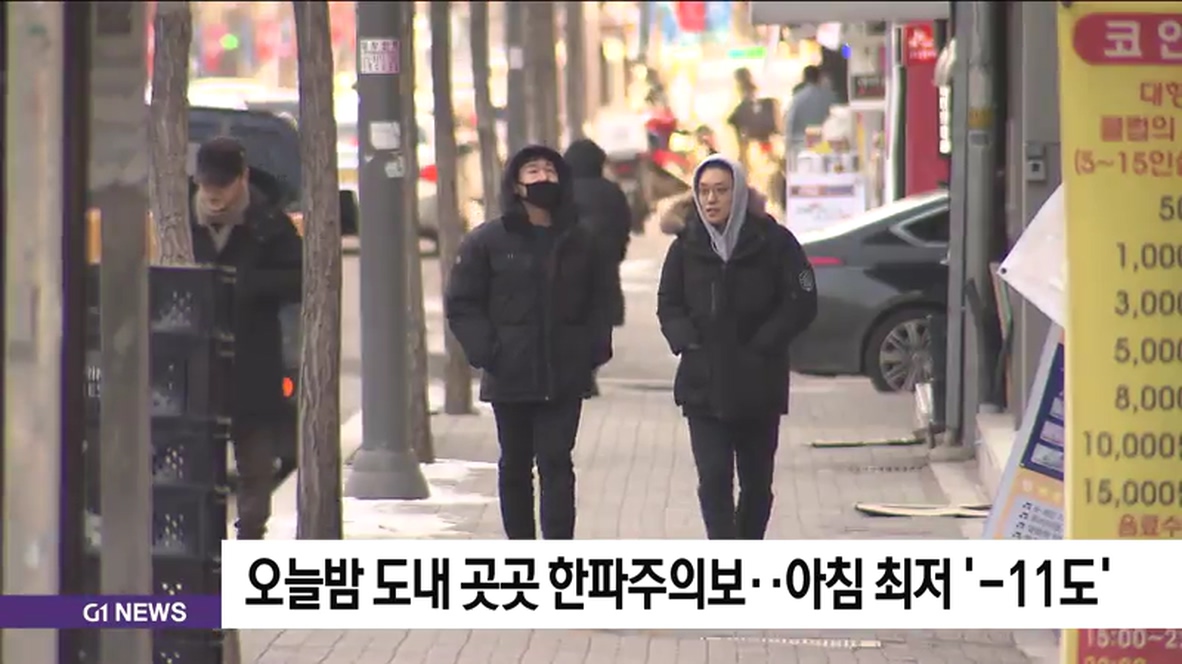 오늘밤 도내 곳곳 한파주의보..아침 최저 '-11도'