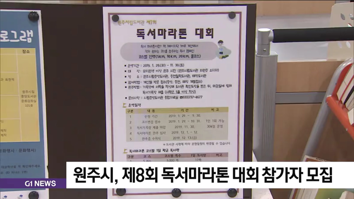 원주시, 제8회 독서마라톤 대회 참가자 모집