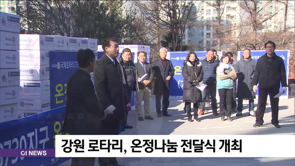 도내 로타리클럽 회원들이 2020년 새해를 맞아, 오늘 원주시 단계동에서 온정나눔 전달식을 열었습니다.