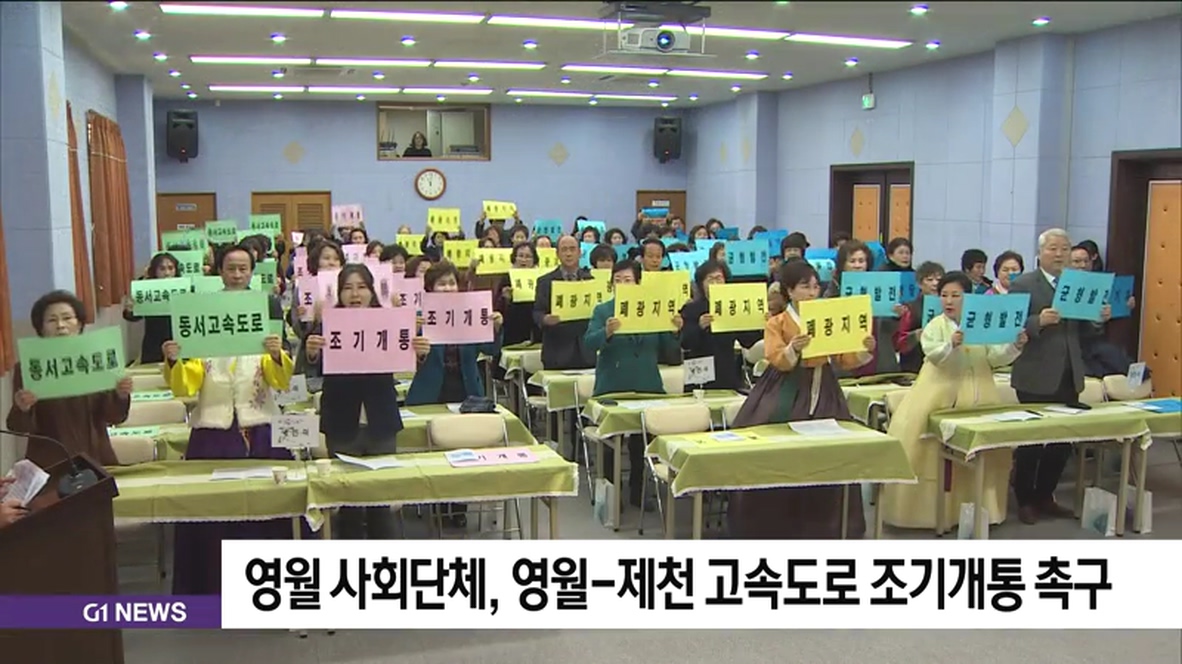 영월군여성단체협의회는 오늘(15일) 군여성회관에서 신년인사회를 열고, 영월-제천 고속도로 조기 개통의 당위성과 필요성을 담은 성명을 발표하고, 결의문을 채택했습니다.