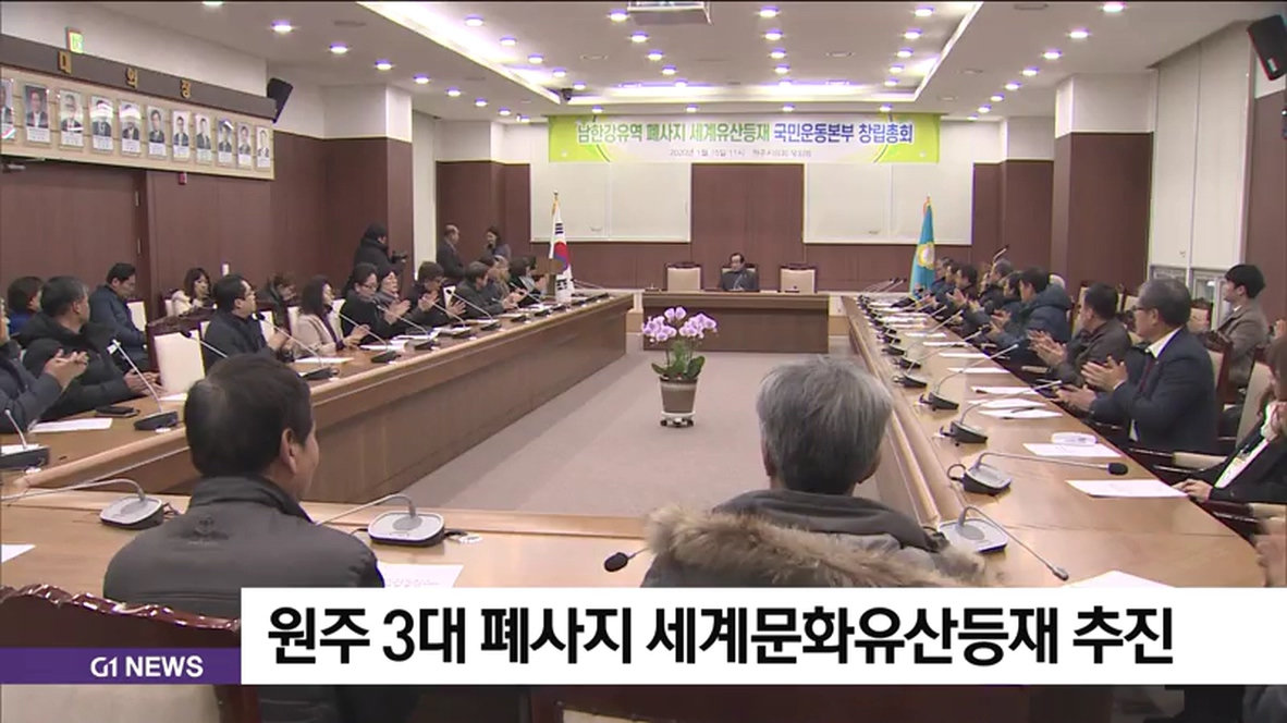 남한강유역폐사지 세계문화유산등재 국민운동본부는 오늘 원주시의회 시민모임방에서 창립총회를 열고, 연간 추진 계획 등을 발표했습니다.