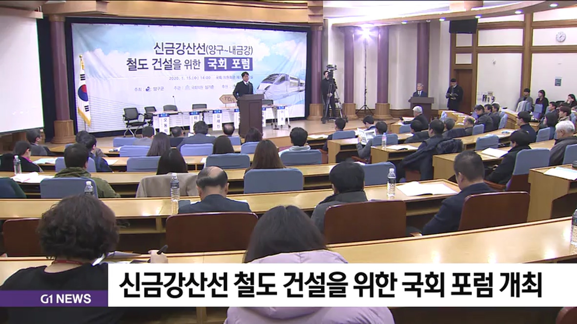 양구군이 주최하고, 더불어민주당 심기준 국회의원이 주관한 '신금강산선 철도 건설을 위한 국회 포럼'이 오늘, 국회 의원회관에서 조인묵 양구군수와 각계 전문가 등 100여 명이 참석한 가운데 열렸습니다.