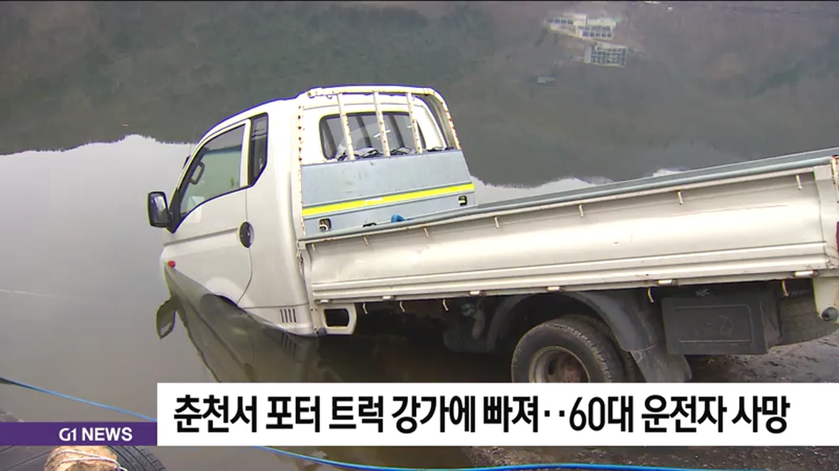 춘천서 트럭 강가에 빠져..60대 운전자 사망