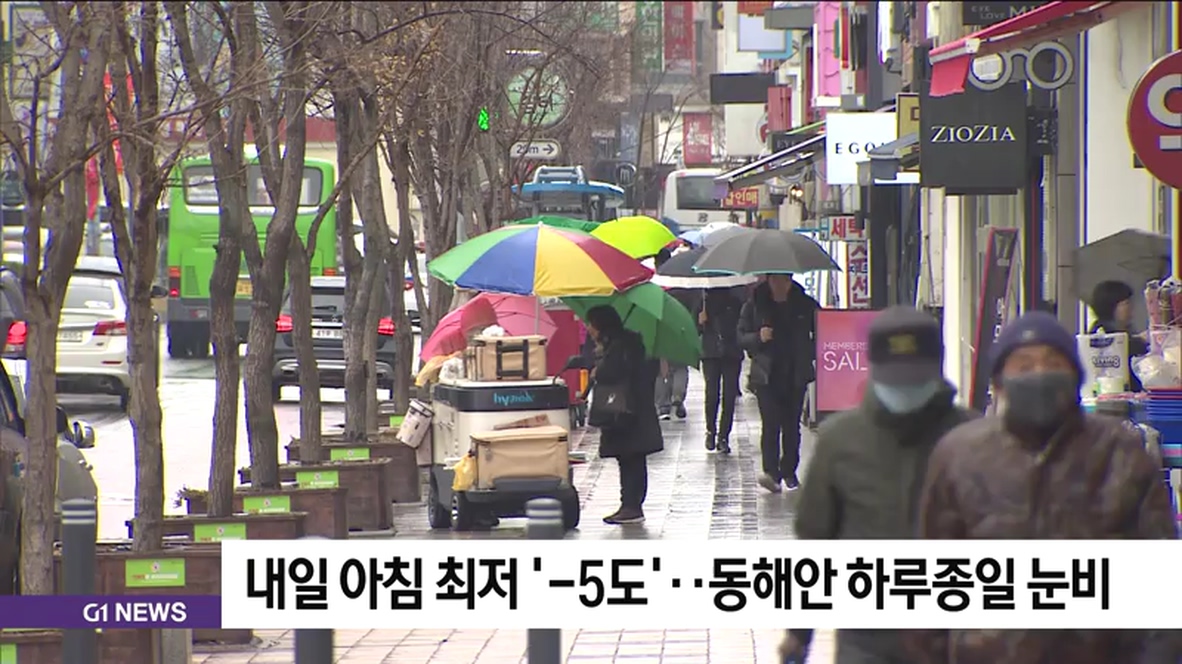 내일 아침 최저 '-5도'..동해안 하루종일 눈비