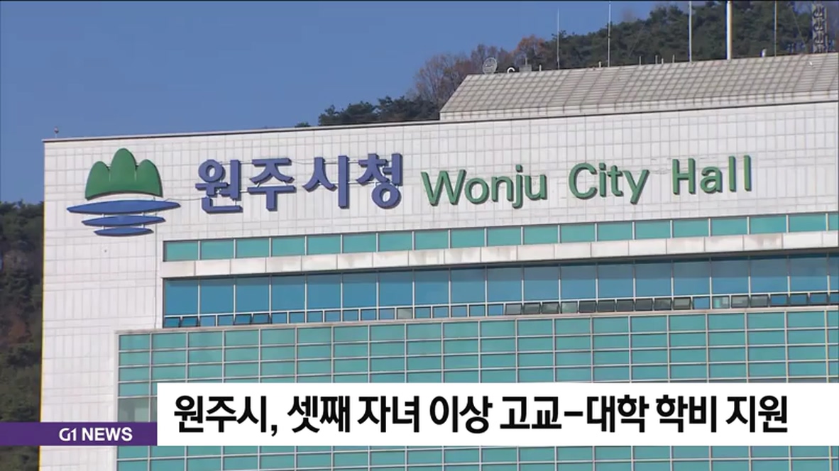 원주시, 셋째 자녀 이상 고교-대학 학비 지원