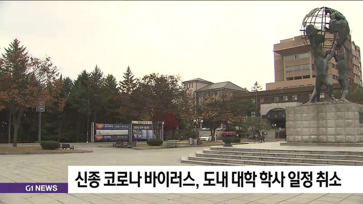 신종 코로나 바이러스 감염증이 확산되면서 도내 대학의 학사 일정도 줄줄이 취소되고 있습니다.