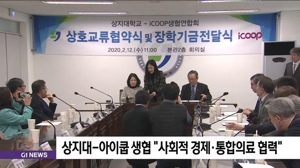 상지대학교와 아이쿱 생협연합회가 오늘 사회적 경제와 통합의료 분야의 교류를 위한 업무협약을 체결했습니다.