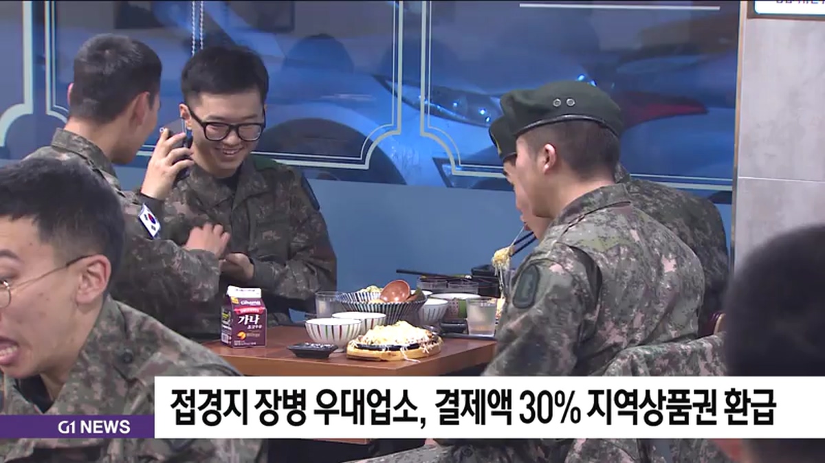 강원도는 올해 60억 원을 투입해 접경지역 군 장병이 장병 우대업소에서 결제한 금액의 30%를 지역 상품권으로 환급해 줄 방침입니다.