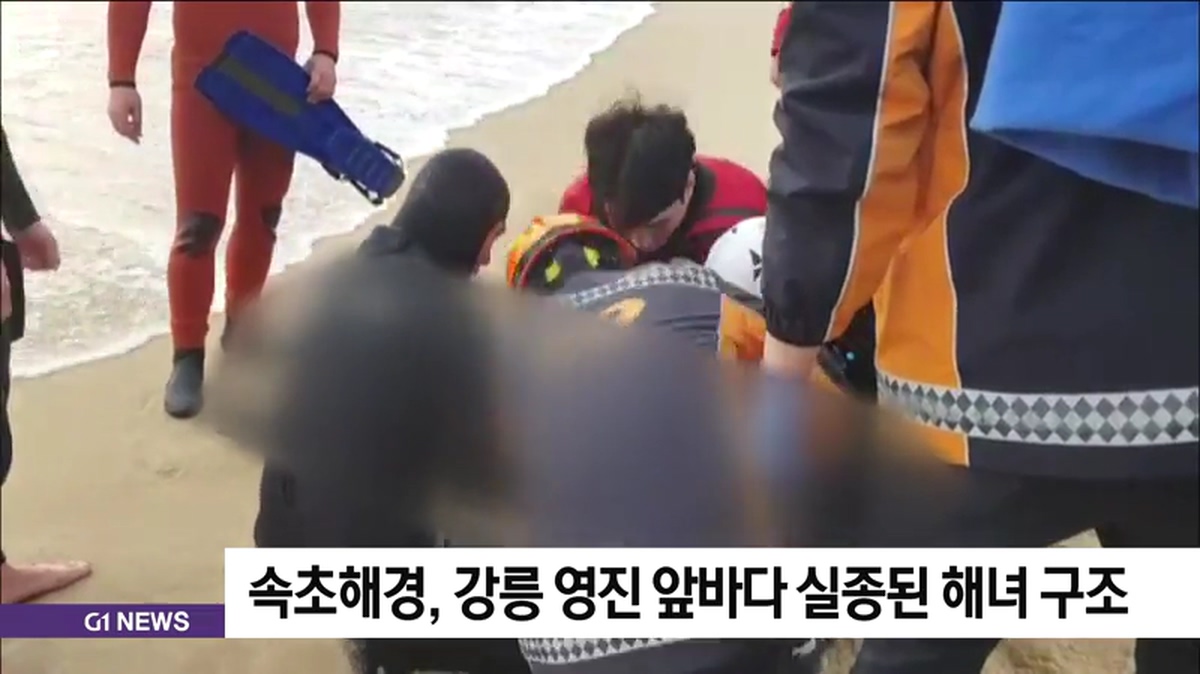 속초해양경찰서는 오늘(14일) 오전 8시 12분쯤 강릉시 영진해변 앞 약 50m 해상에서 조업 중이던 해녀 77살 A씨를 긴급 구조해 병원으로 이송했습니다.