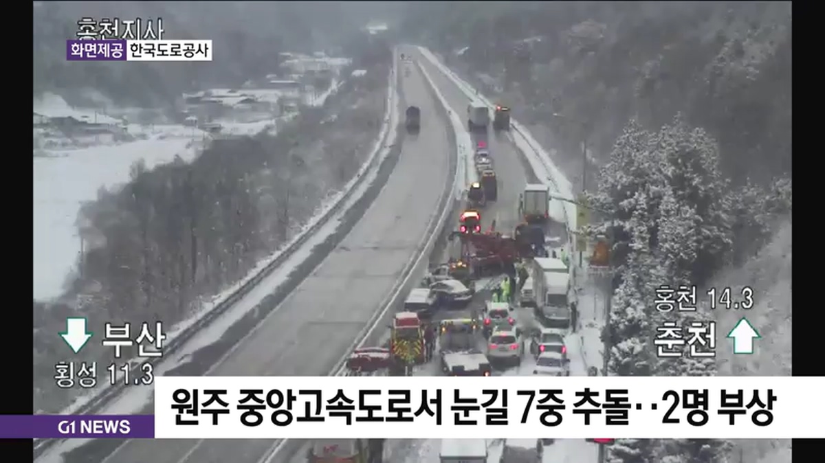 원주 중앙고속도로서 눈길 7중 추돌..2명 부상
