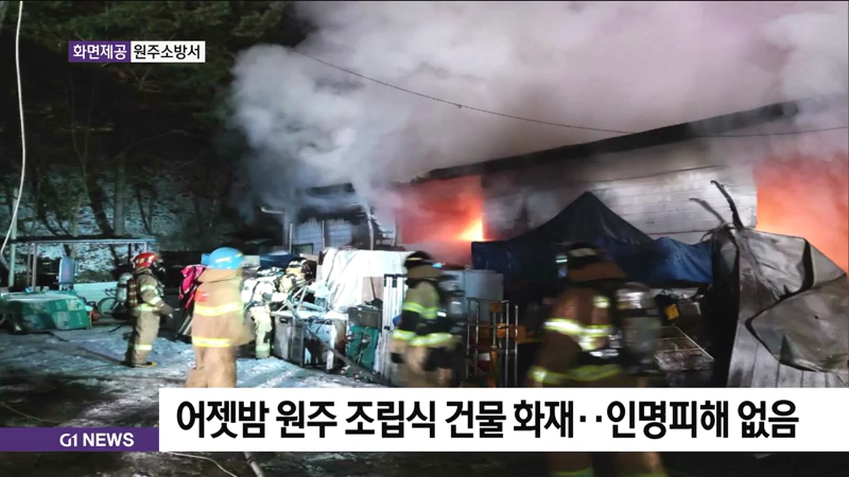 어젯밤 원주 조립식 건물 화재..인명피해 없음