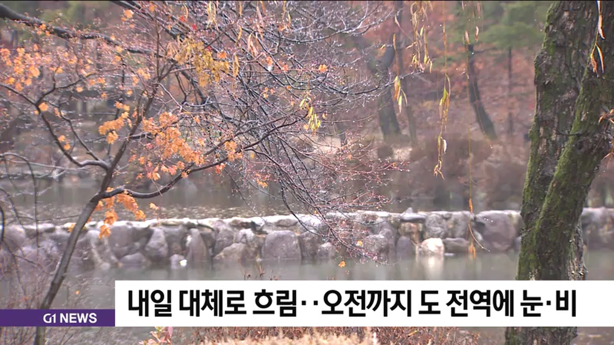 내일 대체로 흐림..오전까지 도 전역에 눈·비