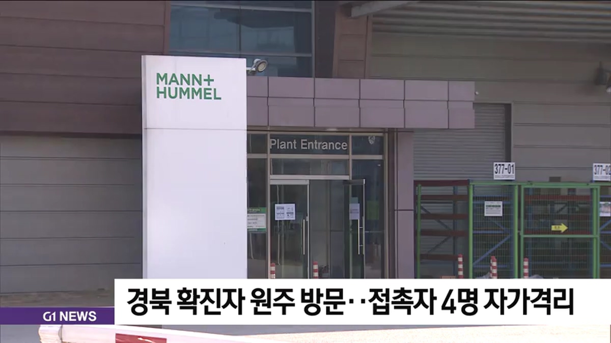 경북 영천에 거주하는 코로나19 확진자가 원주 문막의 한 회사를 다녀간 것으로 확인돼, 공장 관계자 4명이 자가격리됐습니다.