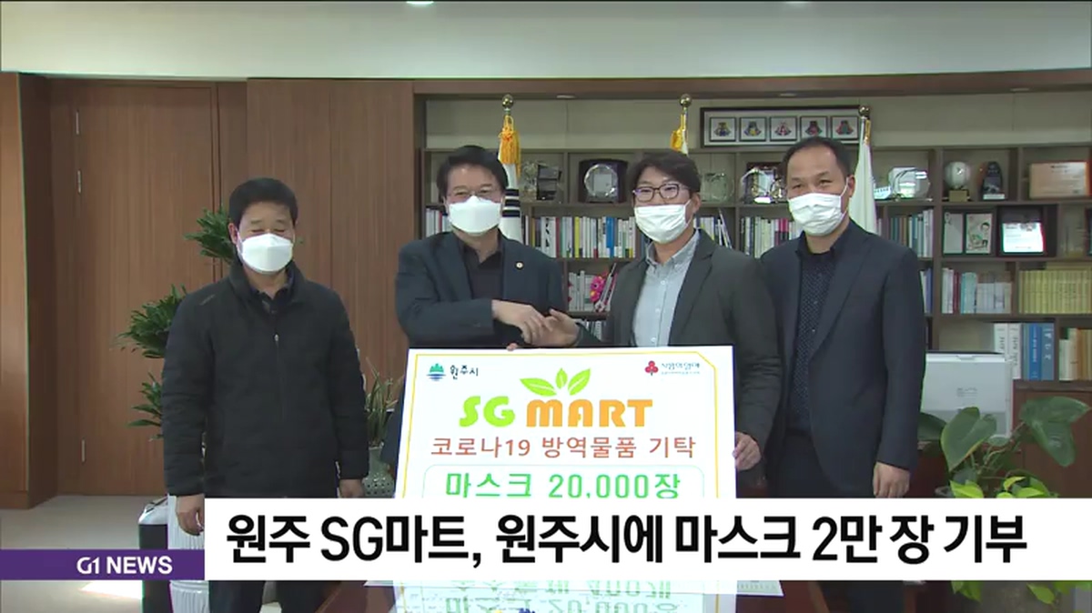 원주지역 향토기업인 SG마트 관계자들은 원창묵 원주시장을 만나, 저소득층과 취약계층을 위해 써달라며, 마스크 2만장과 손소독제 400개를 전달했습니다.