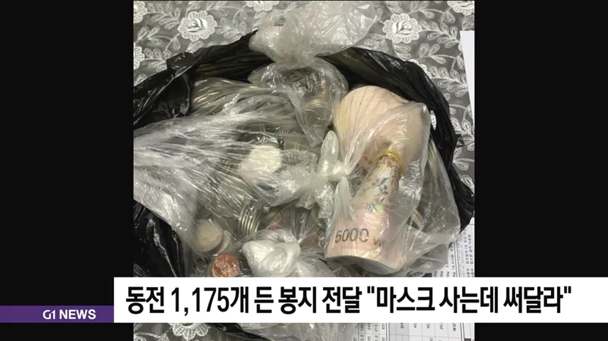 동전 1,175개 든 봉지 전달 "마스크 사는데 써달라"