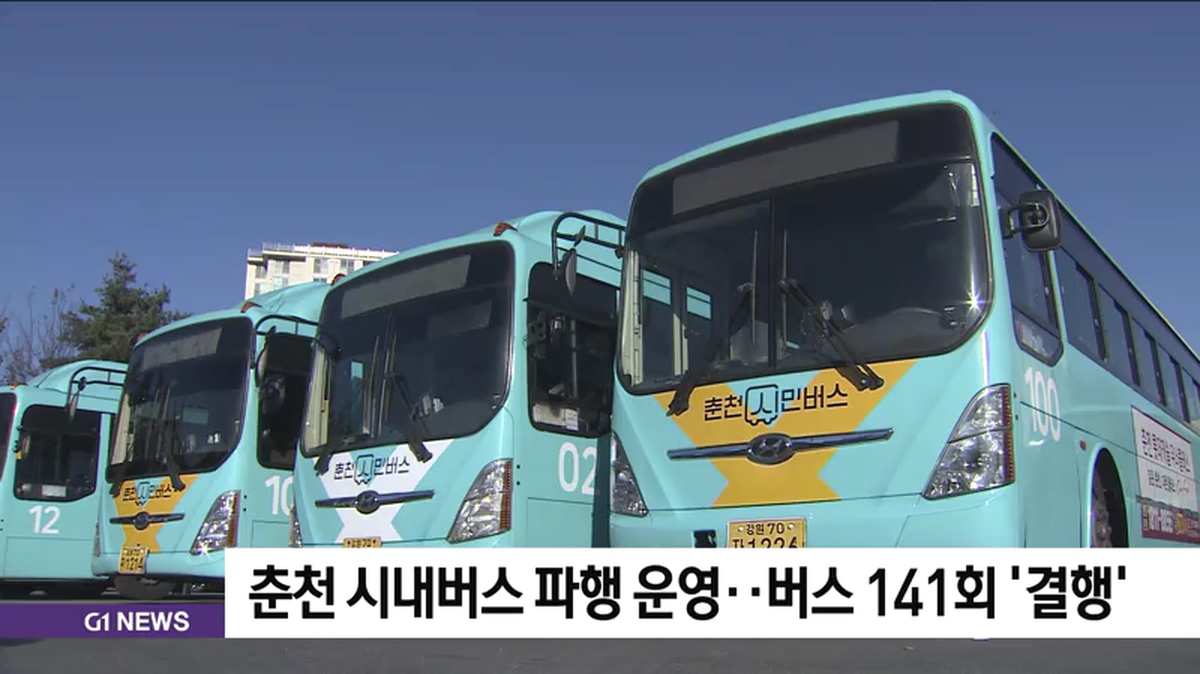 춘천시는 오늘 하루 버스 14대가 운행을 중단해, 11개 노선에 141회 버스 운행이 중단됐다고 밝혔습니다.