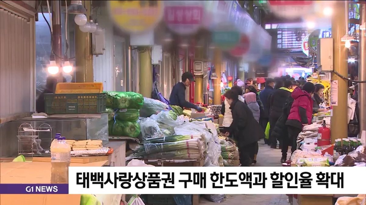 태백시가 코로나19 여파로 위축된 지역 경기 회복을 위해 태백사랑상품권 구매 한도액과 할인율을 대폭 확대합니다.