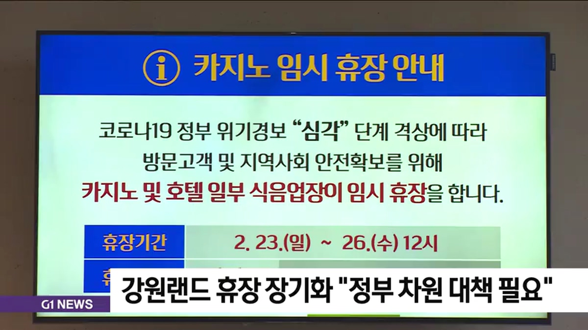 강원랜드는 지난달 23일부터 영업을 중단하고 있으며 지금까지 매출손실액은 1,167억 원으로 추정됩니다.