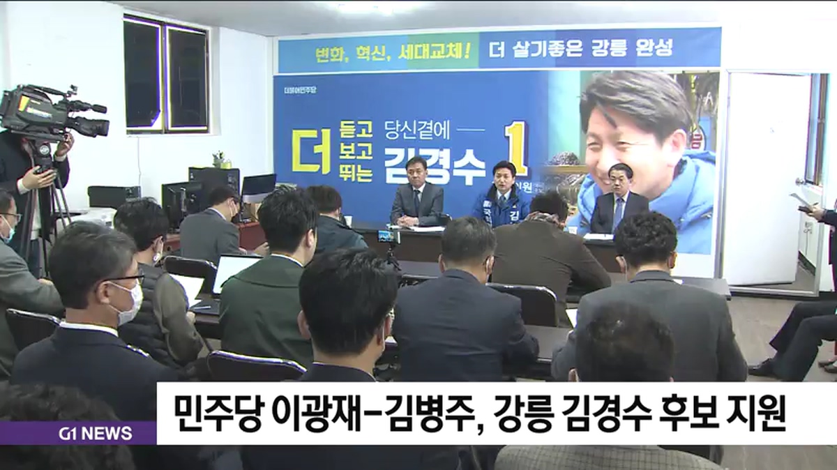 더불어민주당 이광재 강원권역선대위원장과 민주당 인재영입 인사인 김병주 전 한미연합사 부사령관이 강릉을 방문해, 김경수 예비 후보 선거 지원에 나섰습니다.