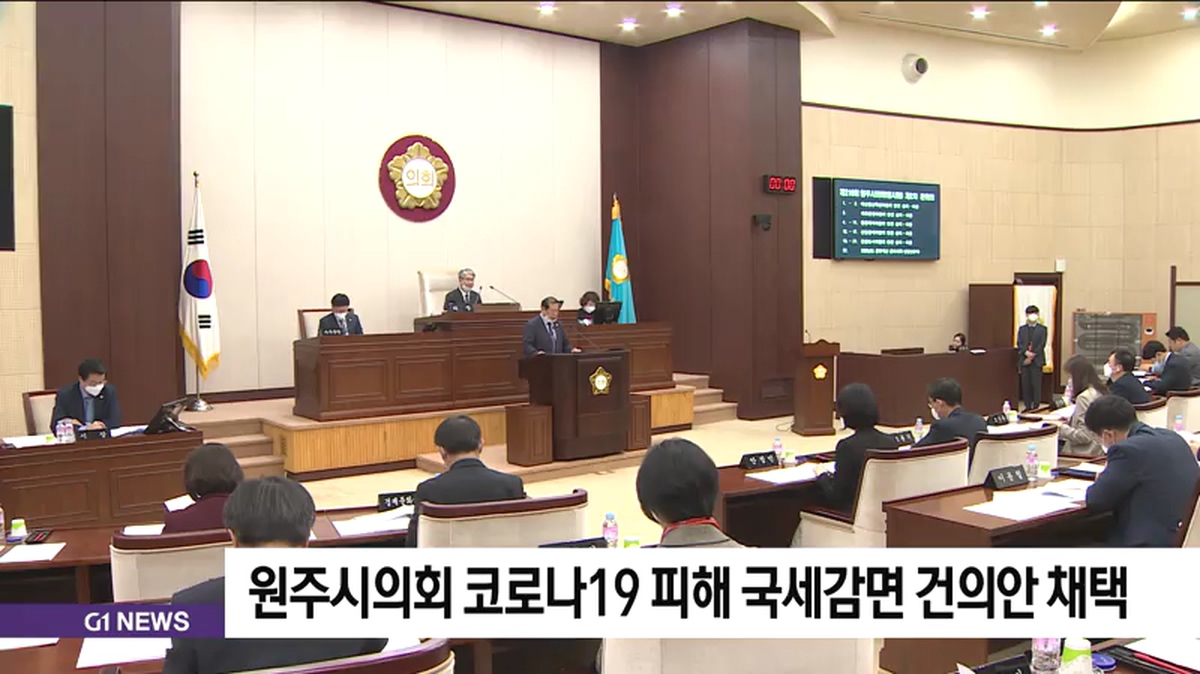 원주시의회는 오늘(24일) 열린 제216회 임시회에서 장영덕 의원이 대표 발의한 '코로나19 사태에 따른 중소기업 및 소상공인 국세감면 촉구 건의안'을 채택했습니다.