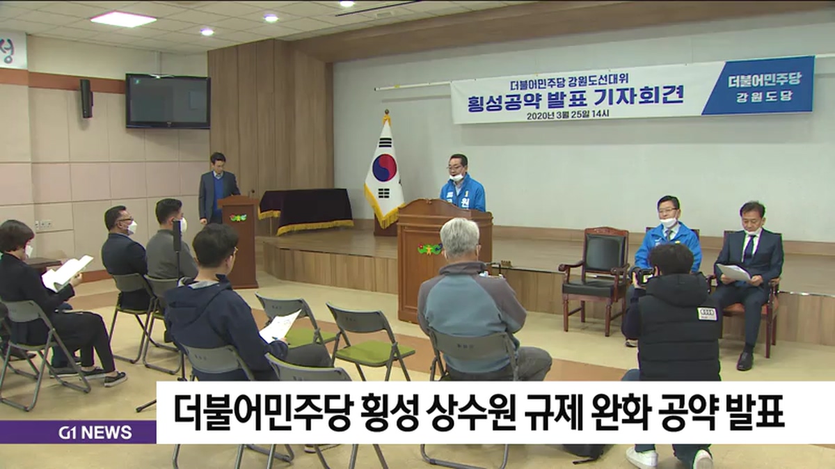더불어민주당 이광재 강원권역선대위원장과 원경환 홍천·횡성·평창·영월 예비후보, 장신상 횡성군수 예비후보는 오늘(25일) 횡성군청에서 합동 기자회견을 열고 상수원 규제 완화를 위한 공약을 발표했습니다.