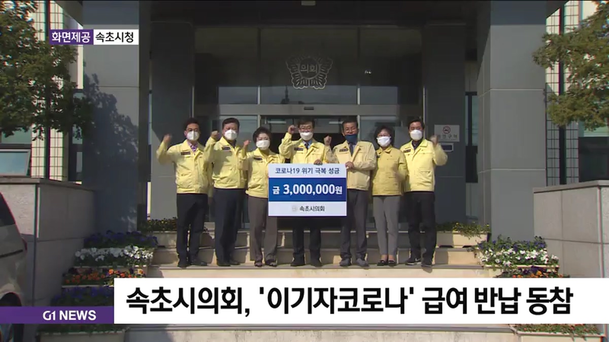속초시의회가 '이기자코로나' 캠페인의 일환으로 십시일반한 급여 3백만 원을 속초시에 기부했습니다.